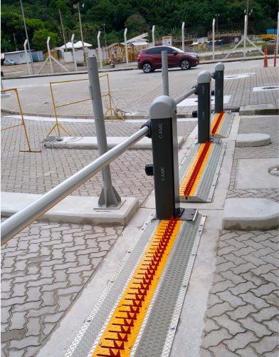 O Dilacerador de Pneus é um equipamento utilizado para controle de fluxo de veículos, que por meio de acionamento por botoeira, projeta garras de aço capazes de perfurar pneus de motos, carros e até caminhões.